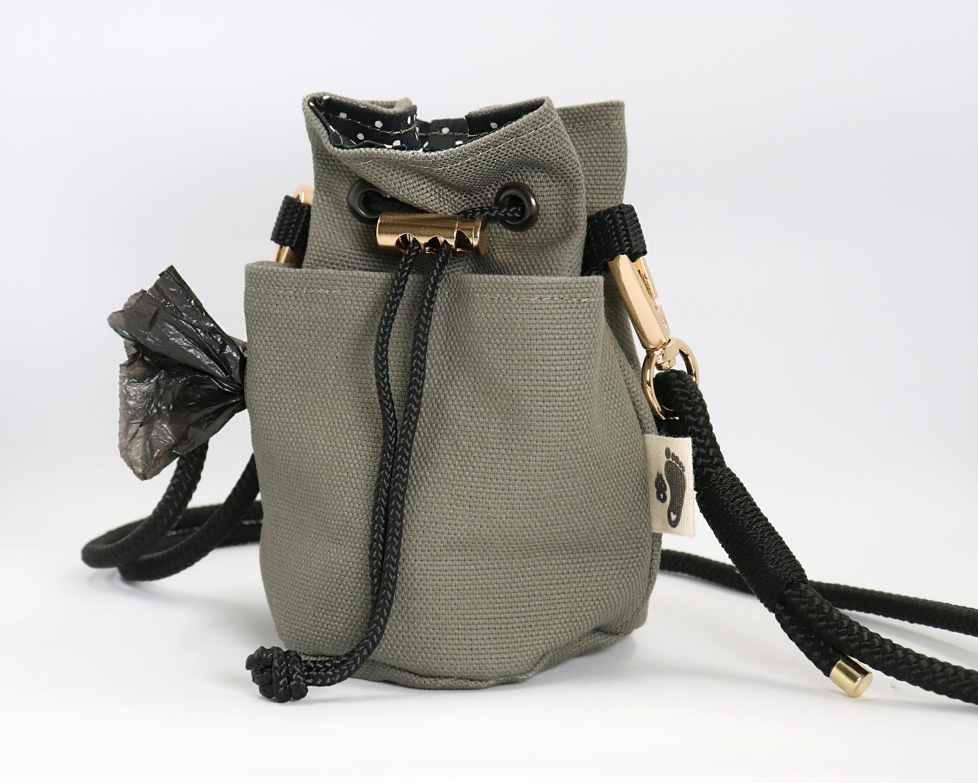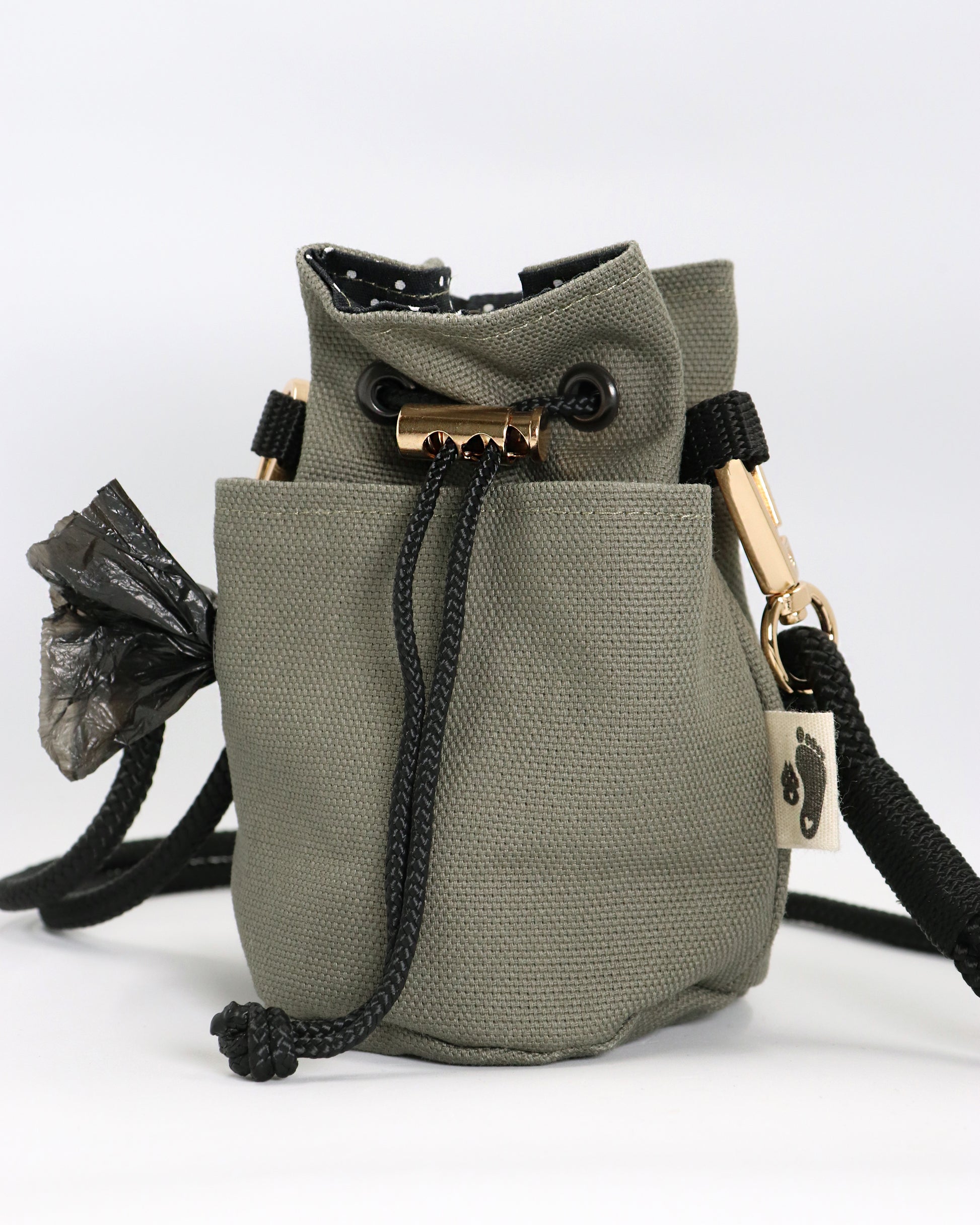 Dieser handgenähte Leckerlibeutel Kaia vereint Funktionalität mit Stil: Viel Platz für Leckerlis, eine clevere Fronttasche als Hundetütenspender, welche sich sicher mit einem Magnetknopf verschließen lässt, und ein beschichteter Innenstoff, der sich ganz einfach reinigen lässt. Auf der Rückseite sorgen ein stabiler Karabiner und eine Schlaufe für flexible Befestigungsmöglichkeiten.